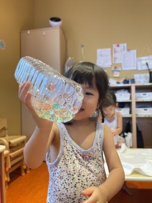 お昼寝後、「すごーいいいいいい‼️せんせ〜い、きれいだよ」「模様ができてる〜」と
