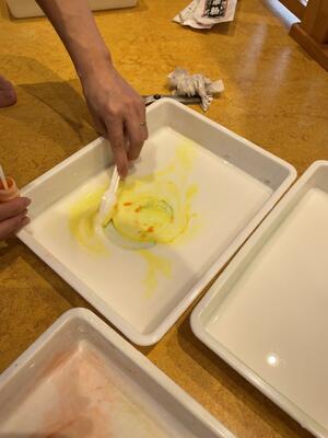 お絵描きコーナーや、梱包材のプチプチコーナー、ラップの芯で足ツボ?!コーナー(笑)、