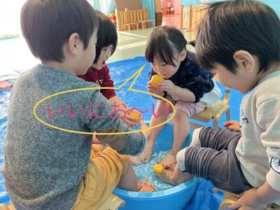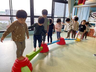 小さいクラスは先生と一緒に「いち、にの、さ〜ん‼️」😆