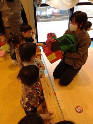 そんな中、保育園ではコマや羽根つき、福笑いなどのお正月ならではのあそびを楽しんでいます。