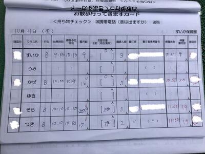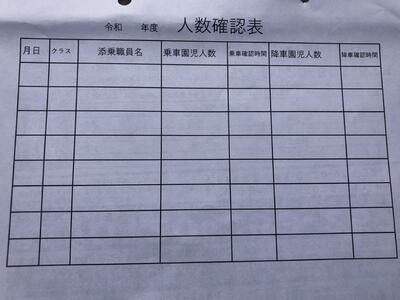 出掛ける前と、帰ってきた時に、園にいる職員にも人数確認をしてもらいます。